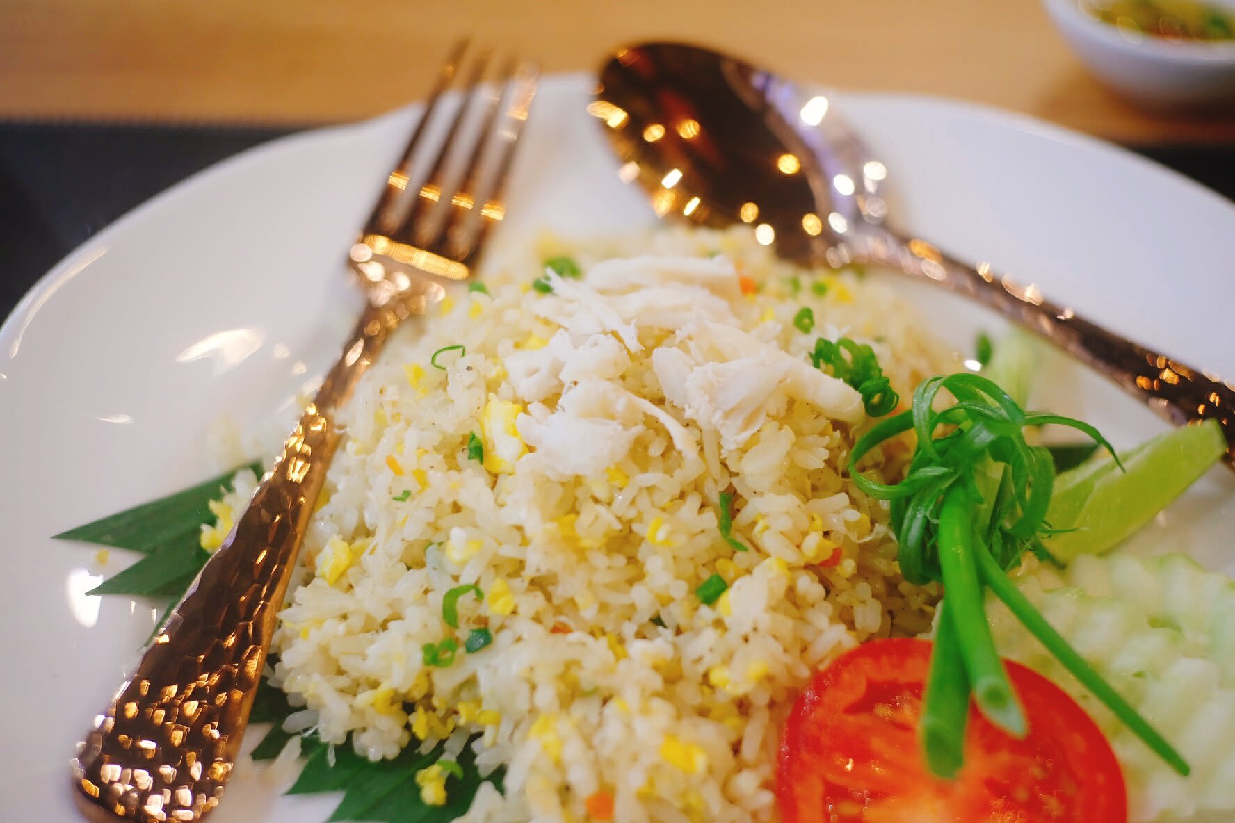 밥에 게살과 각종 채소를 넣고 볶은 요리
