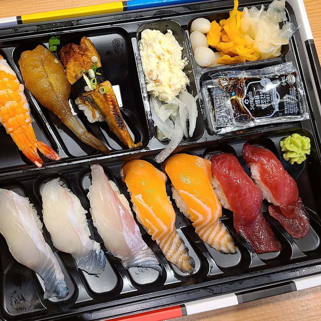 활어, 연어, 참치, 새우, 계란, 유부, 후토마끼 등으로 구성된 세트 메뉴
