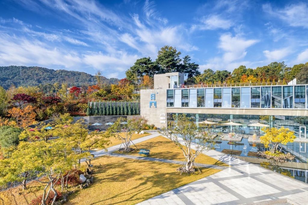 야외 테라스에서 청량한 하늘을 바라보며 브런치를 즐기기 좋은 대형 카페