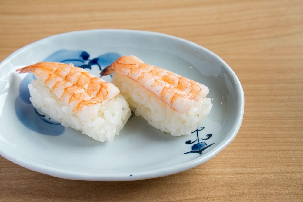 밥 위에 새우를 얹은 초밥