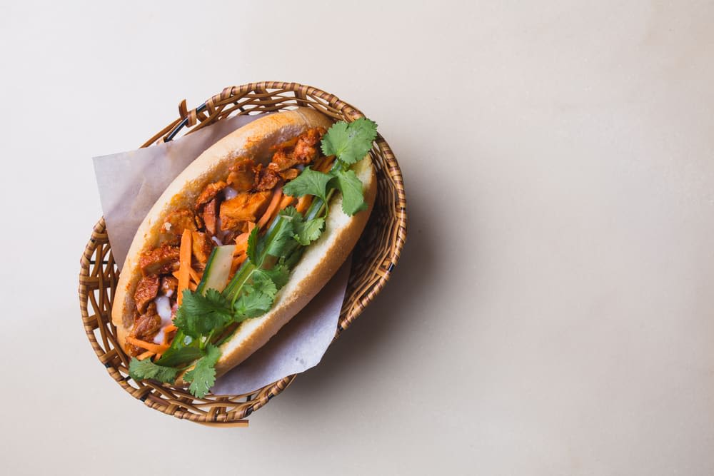 구운 닭고기와 각종 채소를 넣은 베트남식 샌드위치