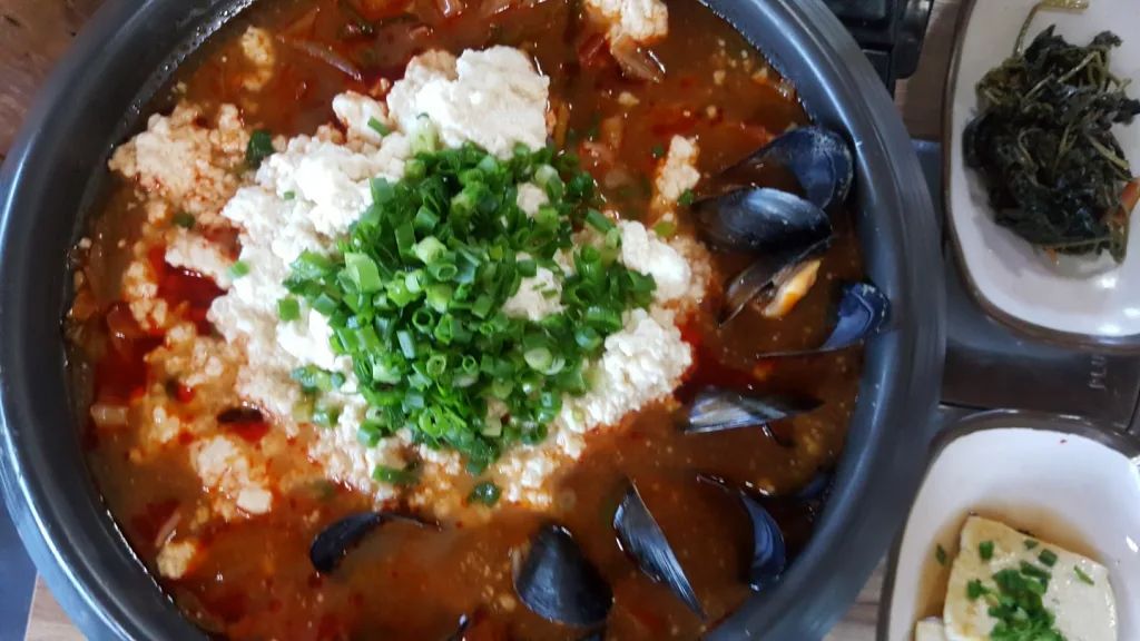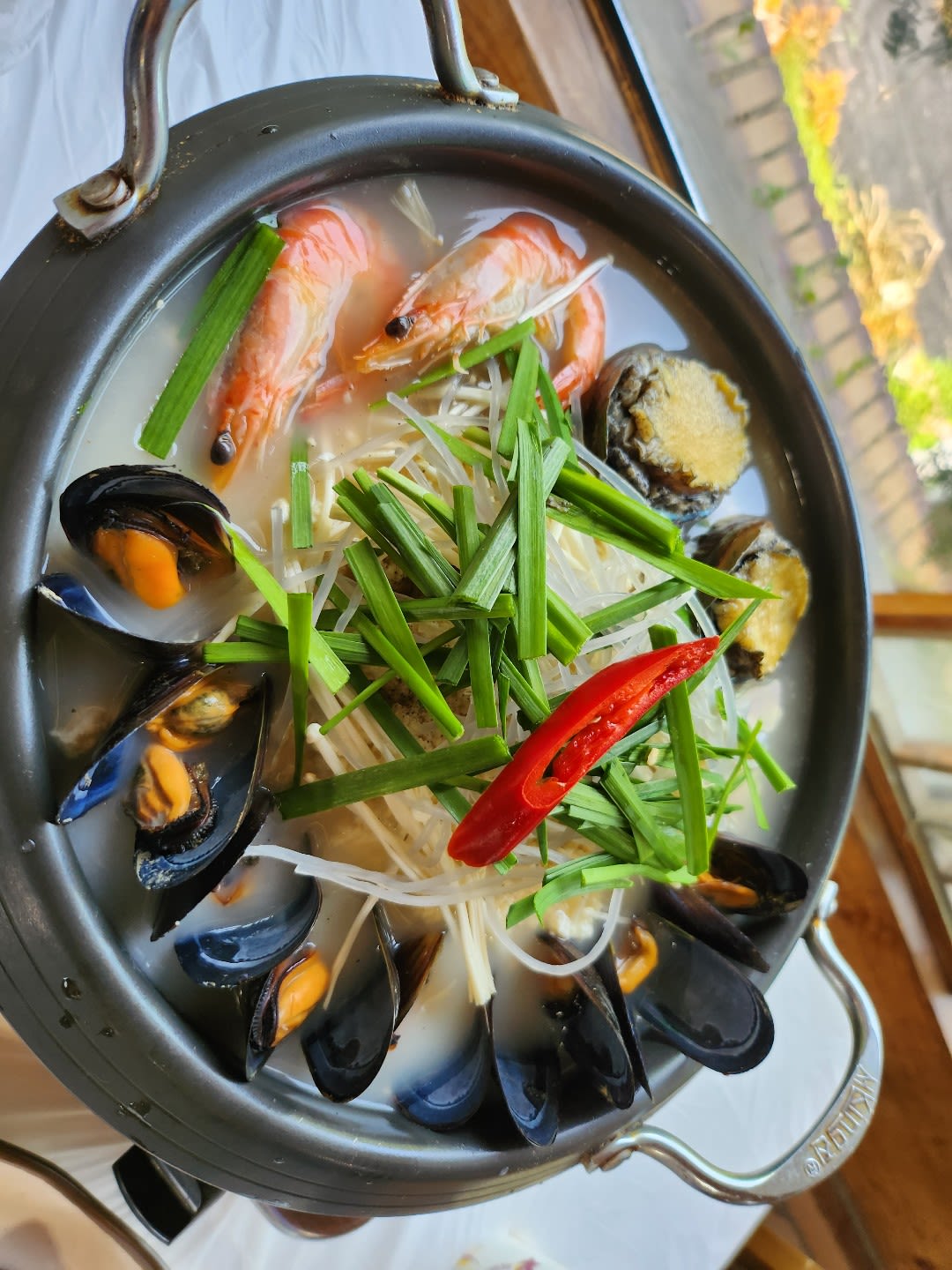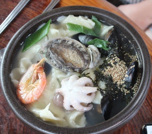 전복, 새우 등의 해산물을 아낌없이 넣은 수제비가 유명한 음식점