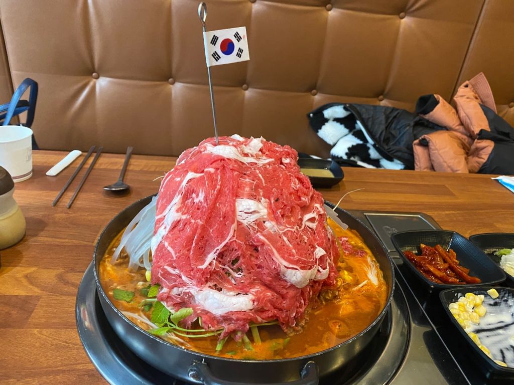 얼큰한 육수에 산더미 같은 채소와 소고기가 올라간 물갈비 맛집