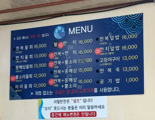 서귀포 물회 맛집 공천포식당| 전복물회 내돈내산 솔직후기