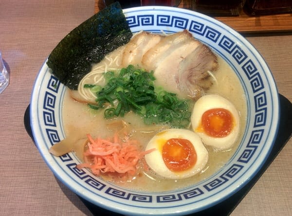 차슈, 김, 실파를 얹은 돈코츠 라멘