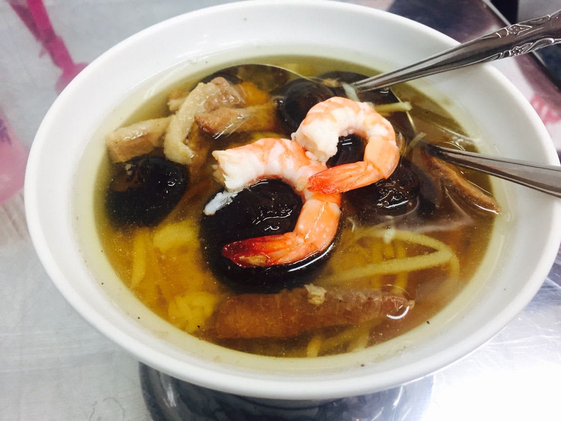 표고버섯과 팽이버섯, 새우 등을 넣고 끓여낸 버섯 국밥