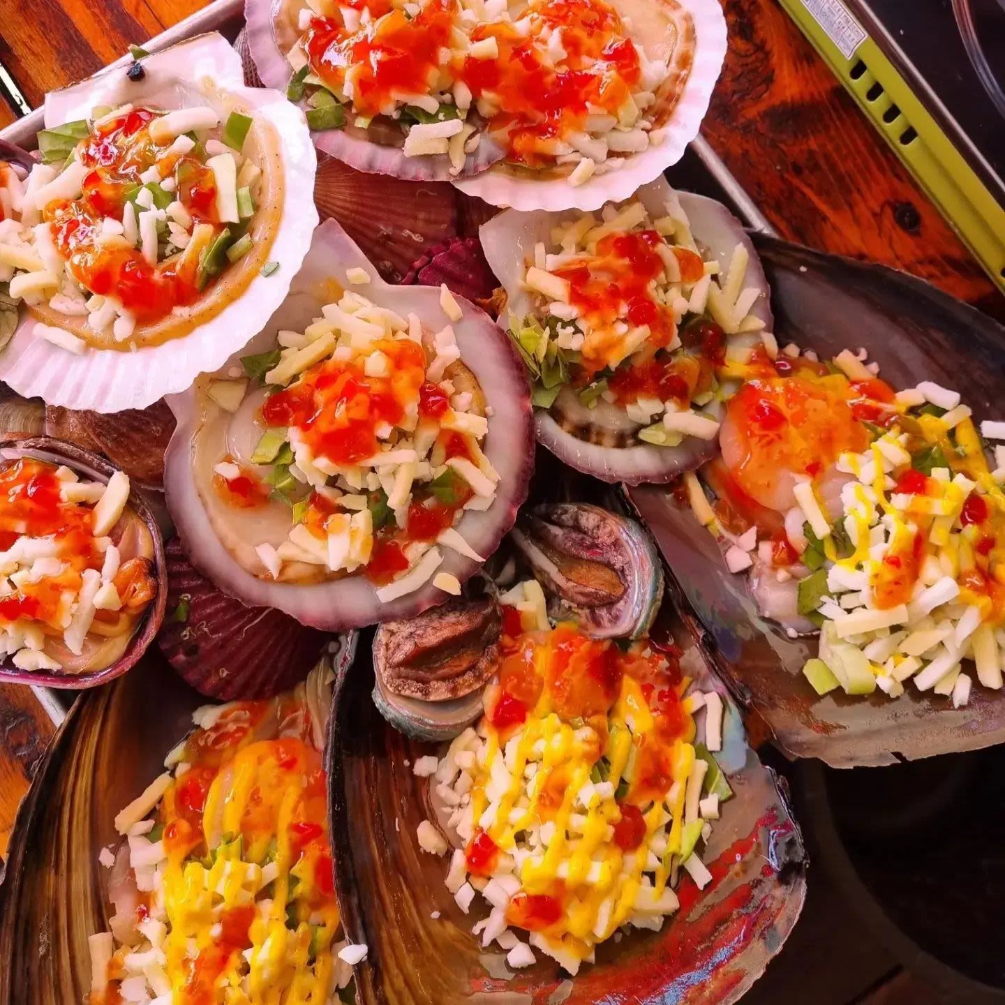 조개구이와 생선회로 구성된 세트 메뉴