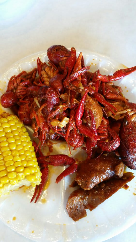 크로우 피쉬, 옥수수, 소시지 등으로 구성된 메뉴