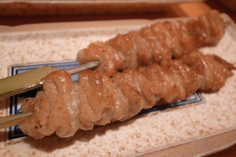 닭 껍질 부위를 꼬치에 끼워 구운 메뉴
