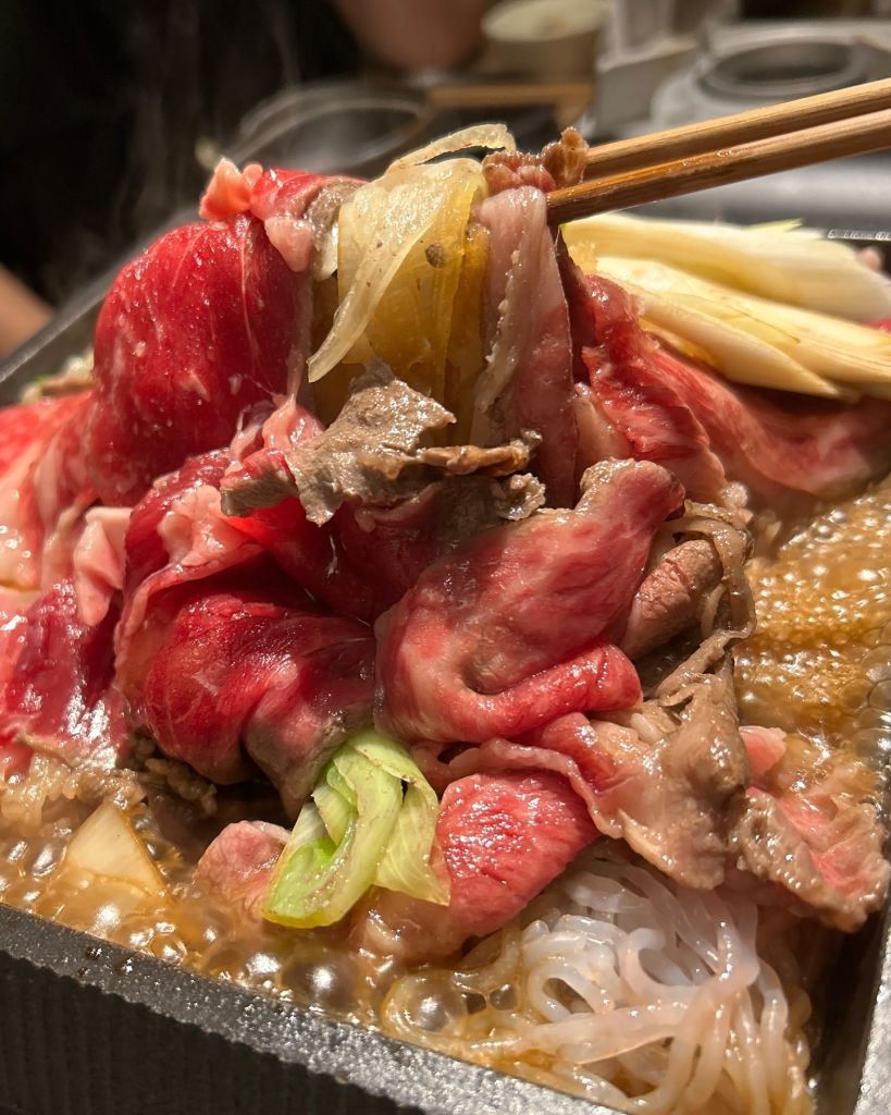 간장과 설탕을 기호껏 넣은 육수에 와규를 담가 먹는 스키야키 전문점