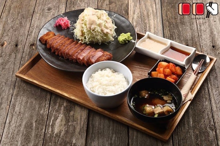 규카츠, 밥, 국 등으로 구성된 정식 메뉴