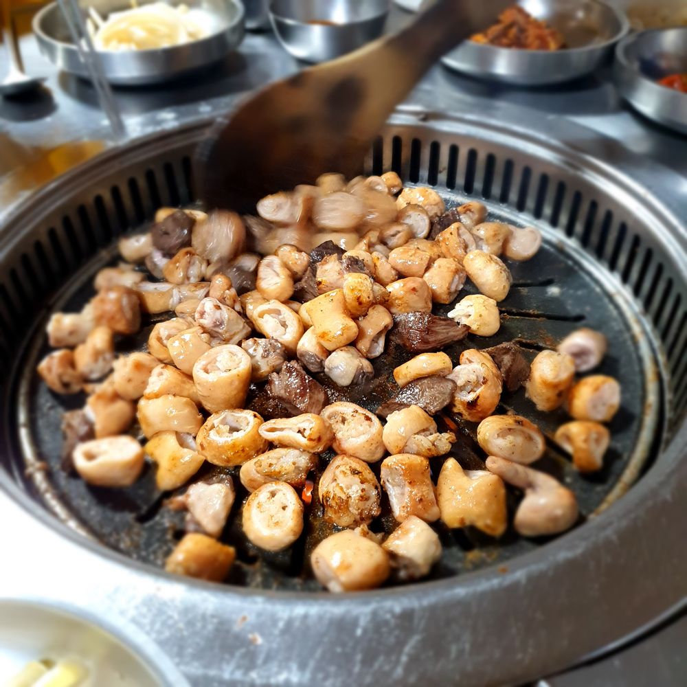 포장마차 분위기에서 고소한 막창을 즐길 수 있는 반려견 동반 음식점