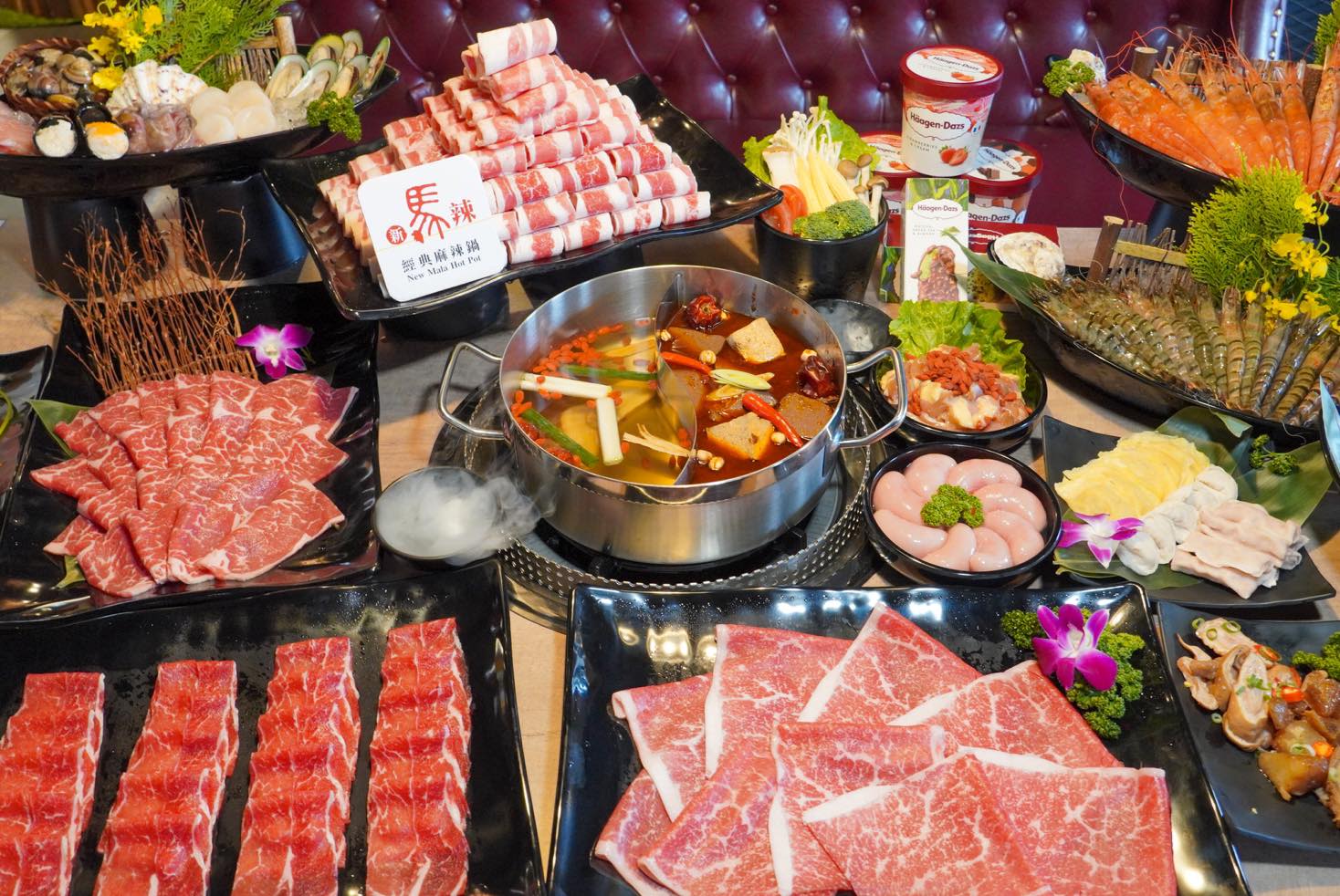 각종 육류와 해산물 등을 무한 리필로 맛볼 수 있는 프랜차이즈 훠궈 전문점
