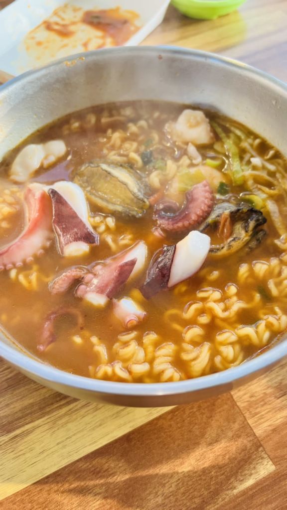 통통한 돌문어와 전복을 넣어 시원한 국물 맛의 해물 라면이 인기인 식당