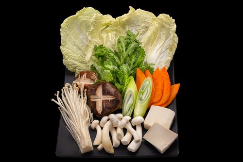 옥수수, 버섯, 배추 등으로 구성된 채소 세트 메뉴