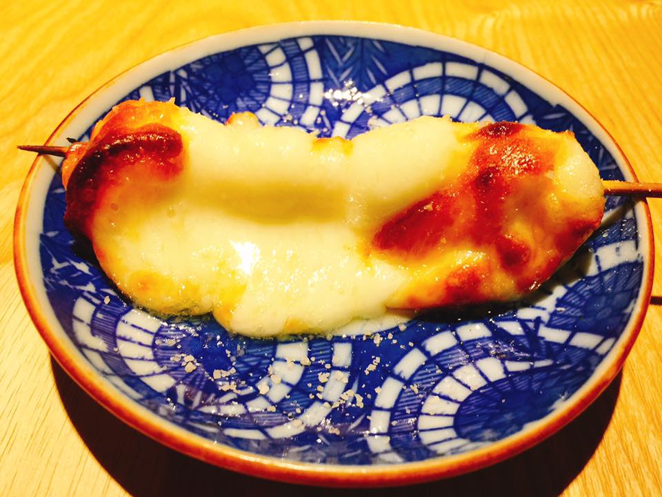 야마다 농장에서 만든 치즈를 꼬치에 꽂아 구운 메뉴