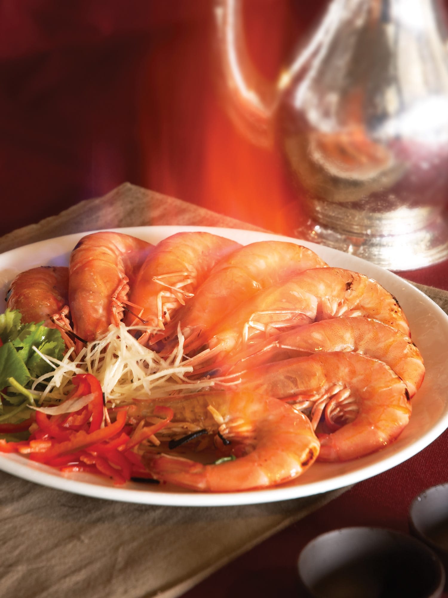 술에 담갔다 쪄 낸 새우를 불에 찐 요리