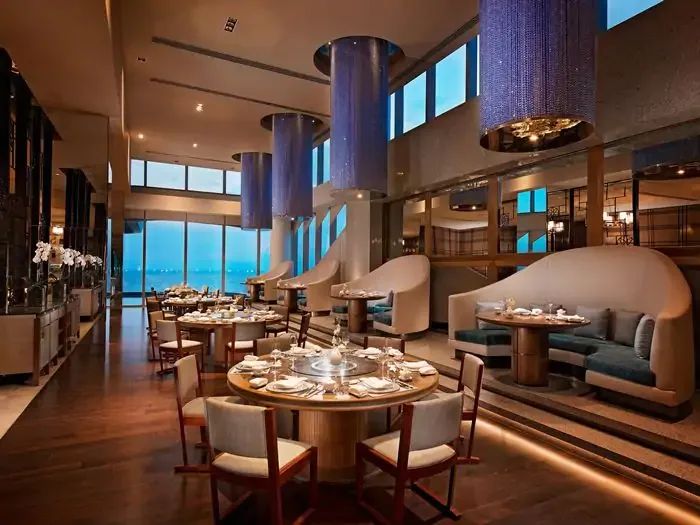 럭셔리한 인테리어와 오픈형 주방이 돋보이는 고급 중식 레스토랑
