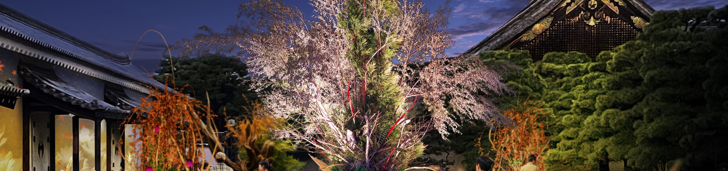 유서 깊은 니조성에서 건축물의 웅장함과 정원의 우아함을 돋보이게 하기 위해 특별한 이벤트가 펼쳐집니다.