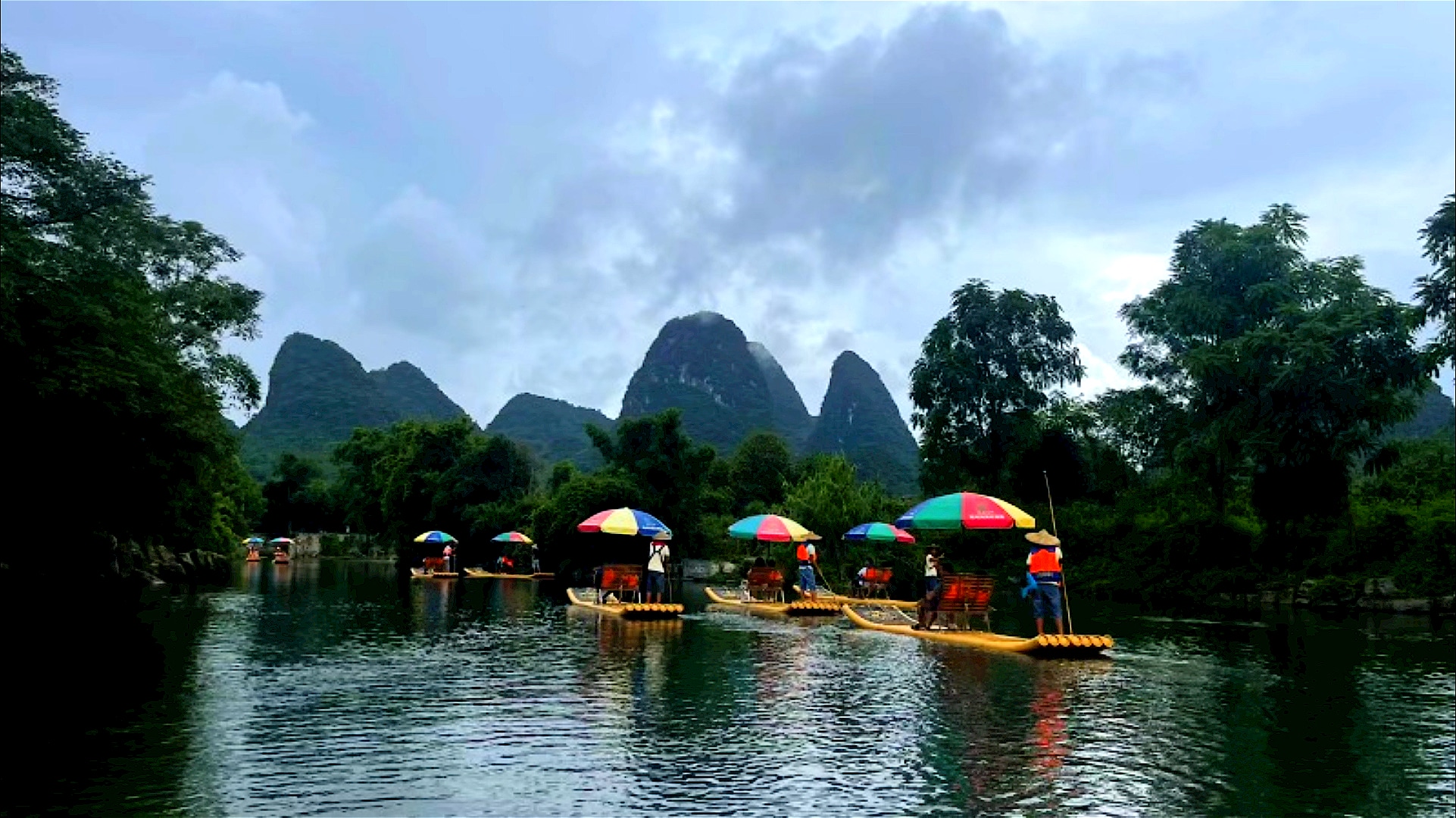 ・ 손으로 젓는 대나무 뗏목을 타고 위룽허의 아름다운 풍경을 감상하세요.