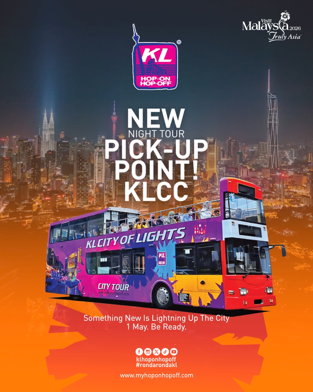 ・ 새로운 픽업 장소 안내!5월 1일부터 KL City of Lights (야경 투어)에 새로운 픽업 장소가 추가되어 더욱 편리하게 이용하실 수 있습니다! 📍 Plaza Sungai Wang (기존) 📍 KLCC – Esplanade 입구 (신규) ・ KL 야경 감상:페트로나스 트윈 타워와 KL 타워 등 상징적인 랜드마크가 어둠 속에서 아름답게 빛나는 모습을 감상하세요. ・ 오픈형 2층 버스:시원한 바람을 맞으며 2층 갑판에서 멋진 스카이라인 사진을 찍어보세요. ・ 2시간 가이드 투어:편안한 분위기 속에서 재미있는 현지 정보와 이야기를 들으며, 처음 방문하는 분들과 가족 여행객에게 안성맞춤입니다.