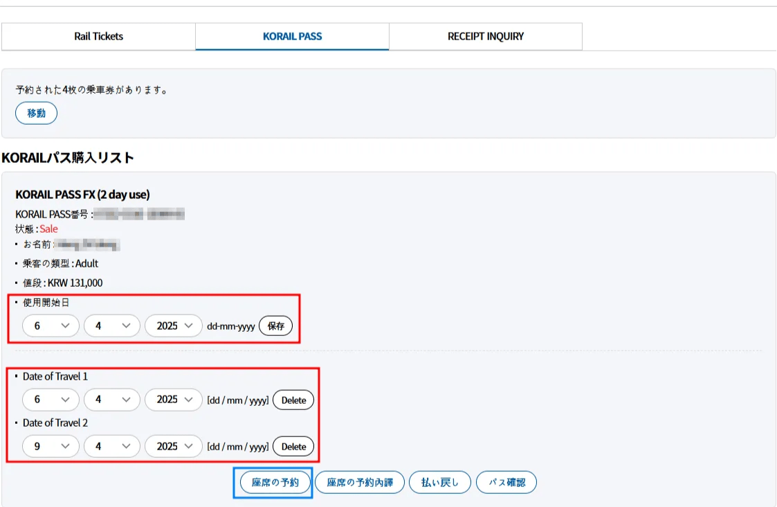 ・期間内であればKTXが乗り放題!また1日最大2回まで座席の指定も可能です。