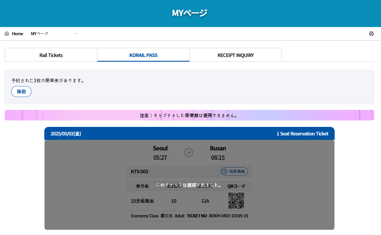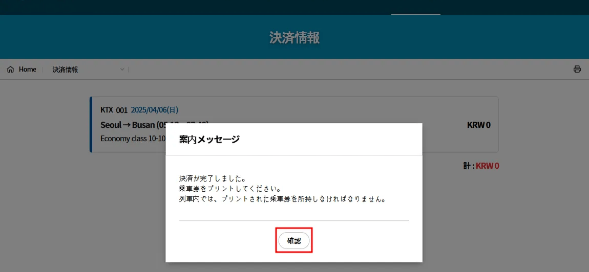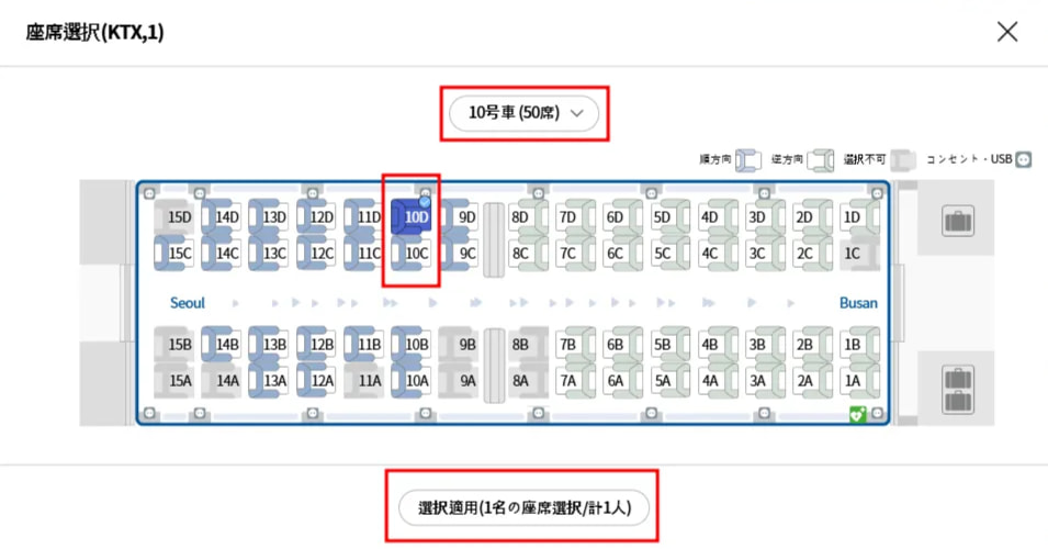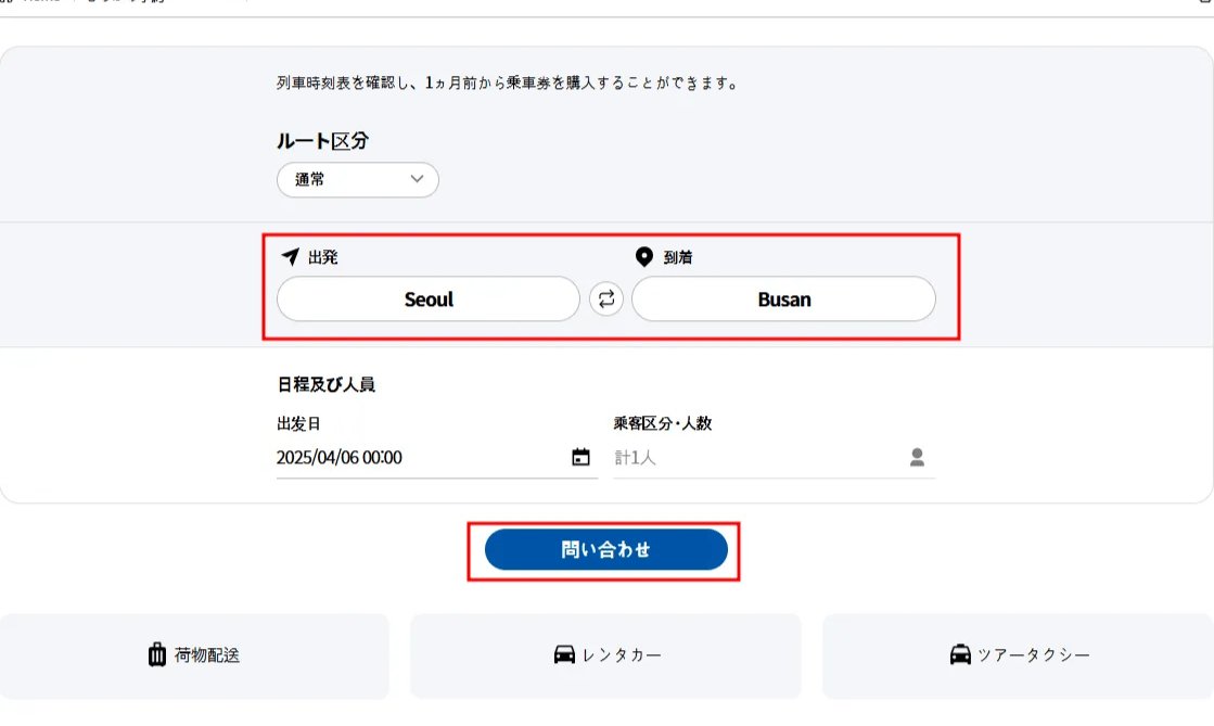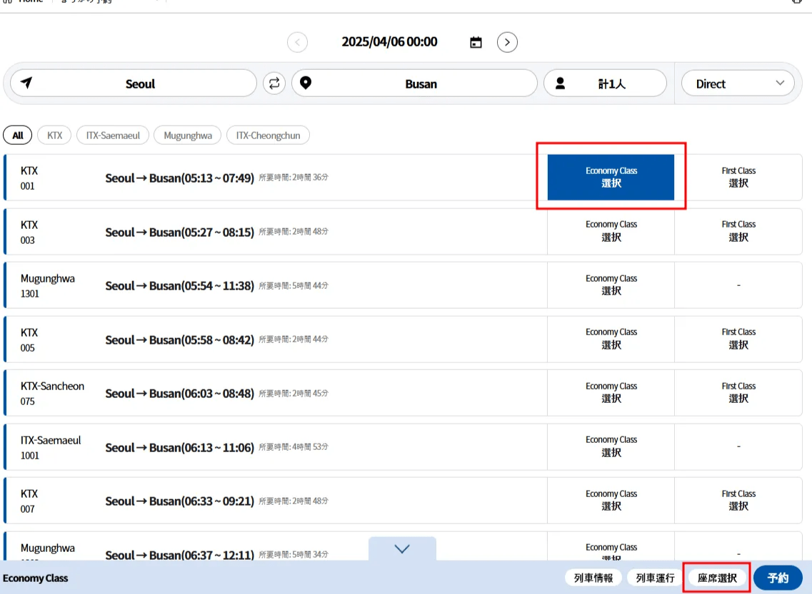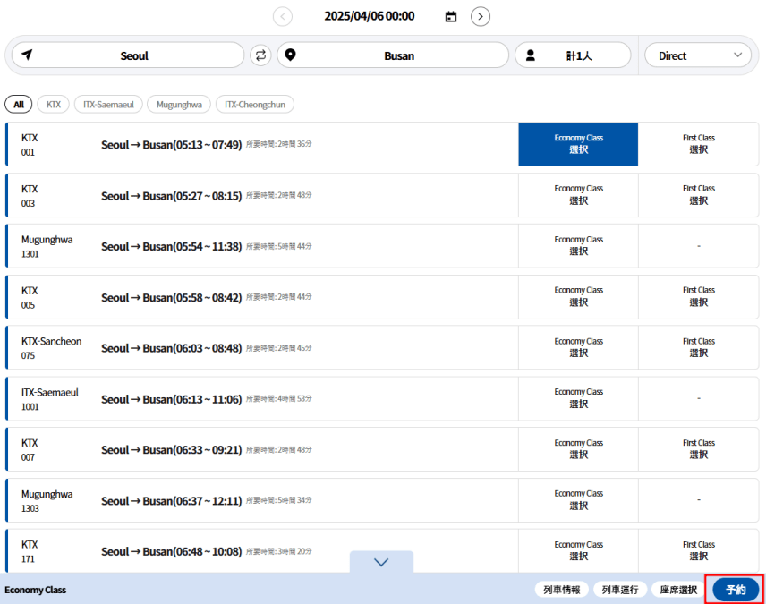 ・事前座席予約をされていない場合は、ご利用当日にKTX駅の窓口にて座席予約が可能です。
