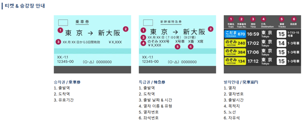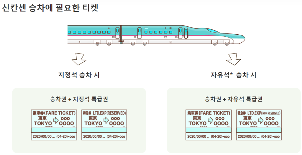 신칸센에 탑승하시려면 탑승권과 특급열차권의 두 가지 티켓이 필요합니다.