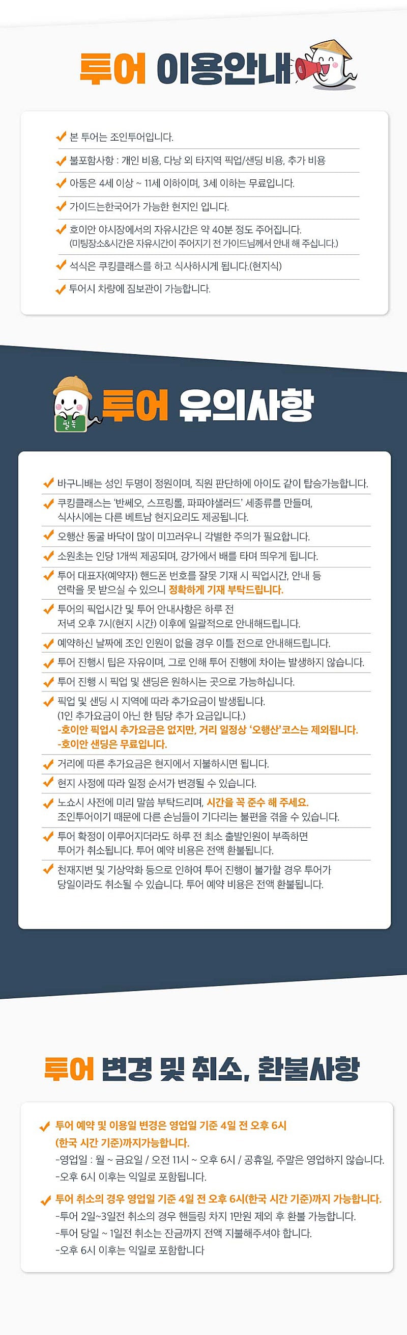 • 호이안 여행시 가야할 필수코스들이 모두 포함되어 있으면서 금액까지 저렴한 가성비 스케줄입니다.