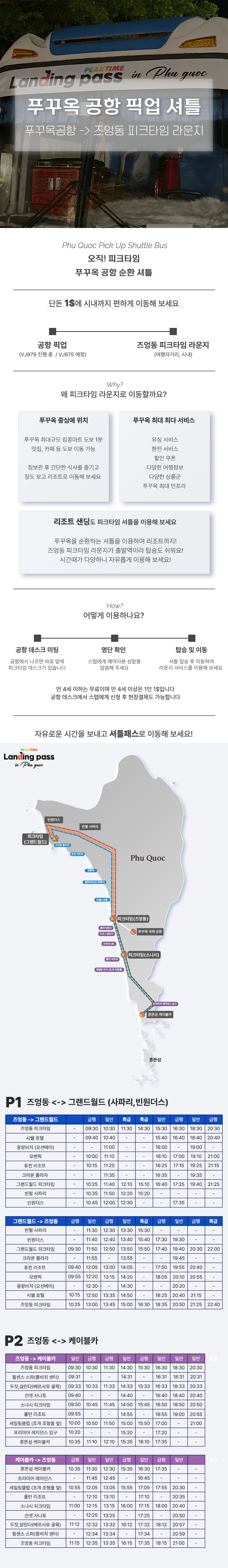 [푸꾸옥] 공항 픽업, 리조트 샌딩, 관광지 이동 셔틀패스