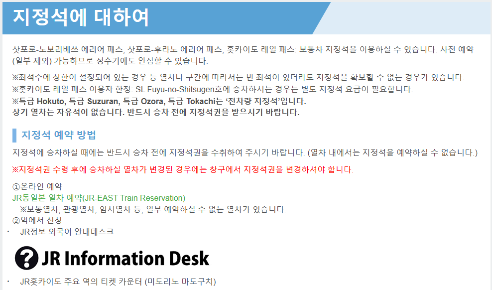 • 지정석에 승차하실 때에는 반드시 승차 전에 지정석권을 수취하여 주시기 바랍니다. (열차 내에서는 지정석을 예약하실 수 없습니다.)
