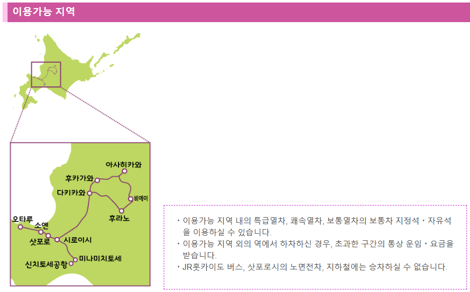 • 신칸센, JR홋카이도 버스, 삿포로시의 노면전차, 지하철에는 승차하실 수 없습니다.