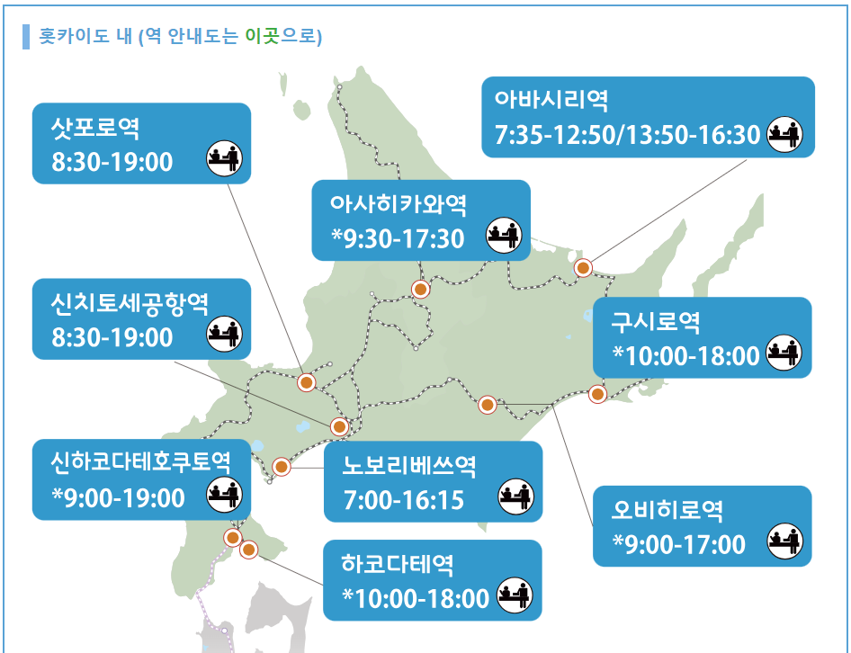 • 교환처 약도 : https://www.jrhokkaido.co.jp/global/pdf/k-railpass-station.pdf