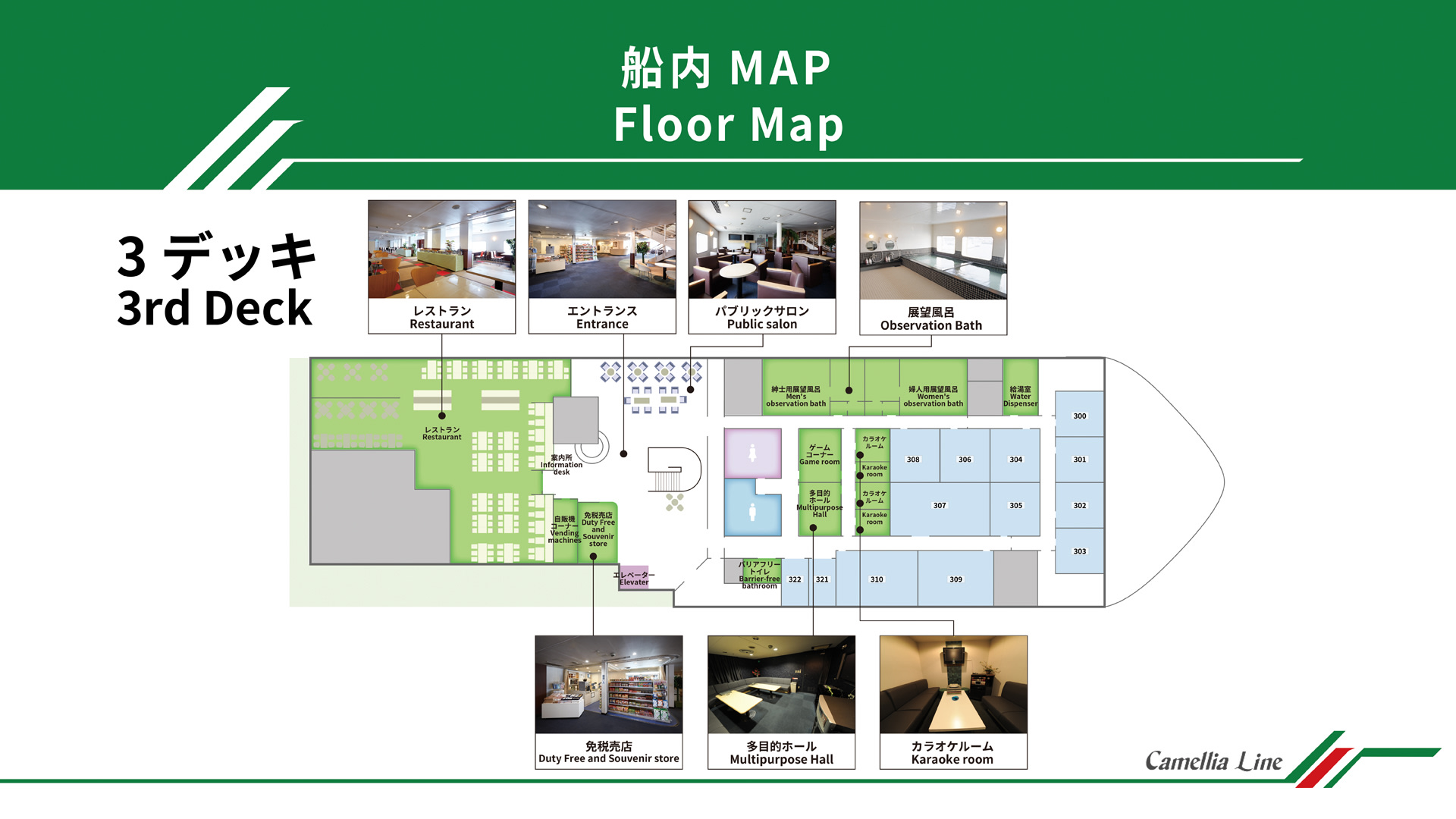 ・ 즐거운 선내 시설: 스파 바스, 게임, 노래방, 그리고 일본식, 한국식, 서양식 식사를 제공하는 레스토랑을 즐겨보세요.