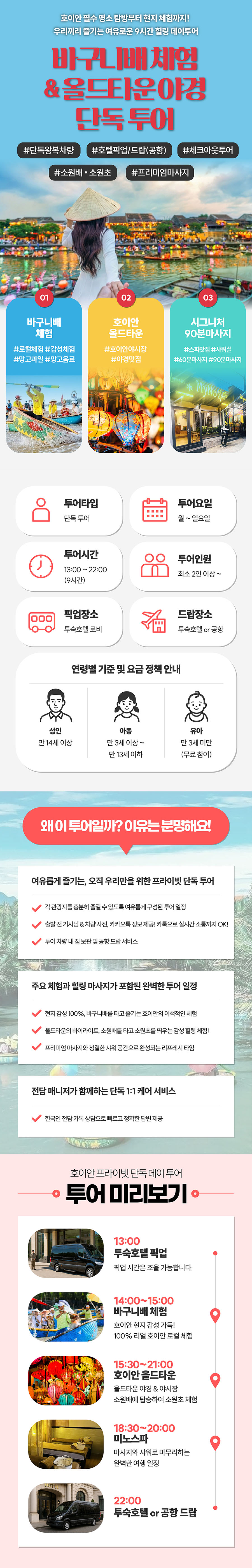 👉 호이안의 대표 명소와 로컬 체험 감성을 모두 담은 특별한 하루! 우리만의 맞춤형 9시간 힐링 데이투어
