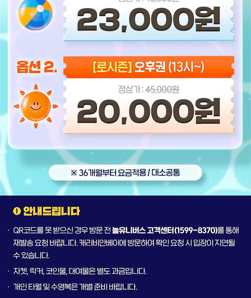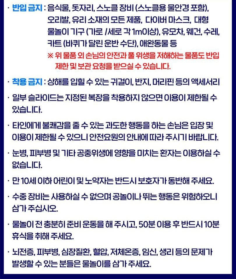 * 락커 및 튜브 등 부대시설 이용은 별도 요금이 발생할 수 있습니다.
