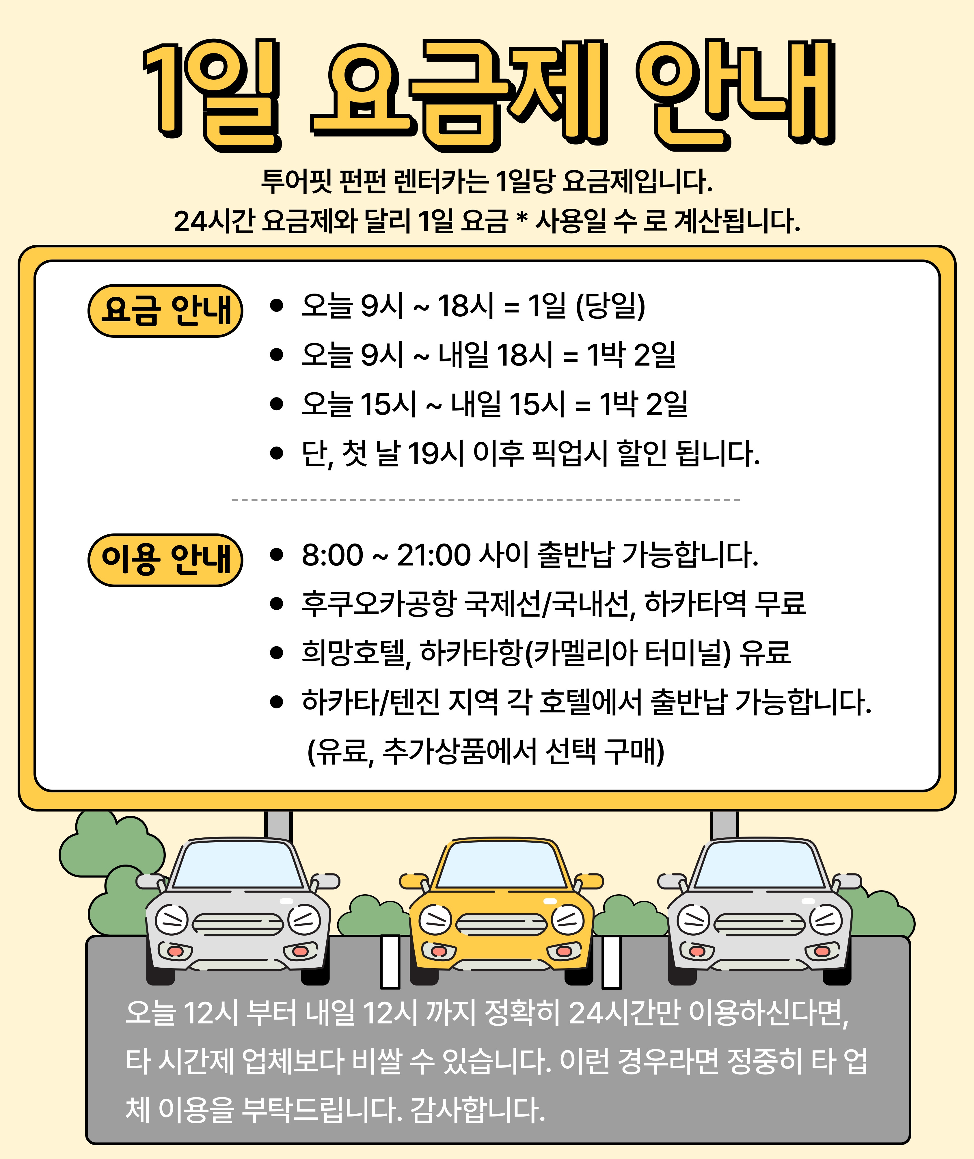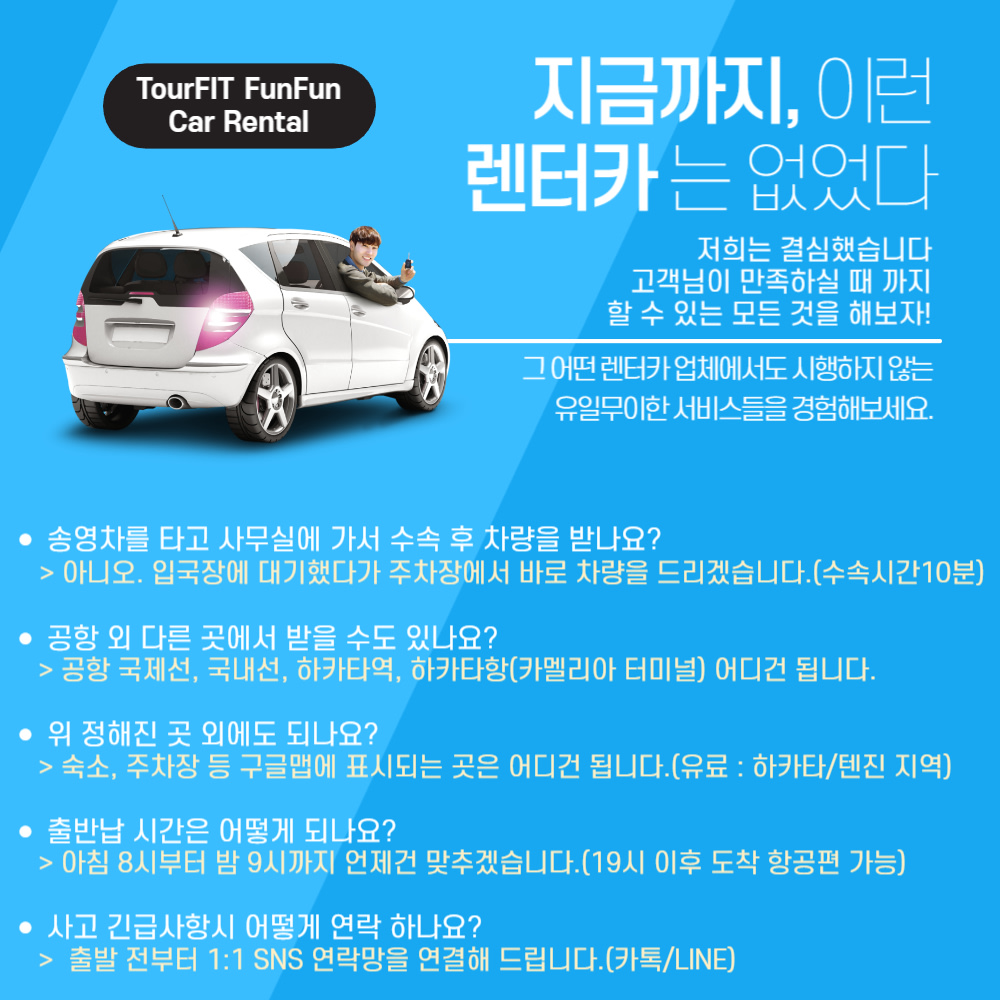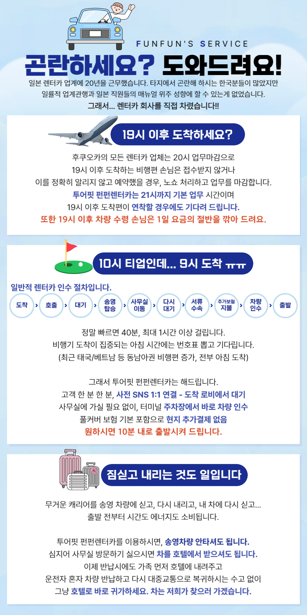 ・밤 21시까지 응대해드리므로, 19시 이후 도착 비행기도 차량 인도 가능합니다.(타사 19시 이후 도착비행기 당일 수령 불가)
