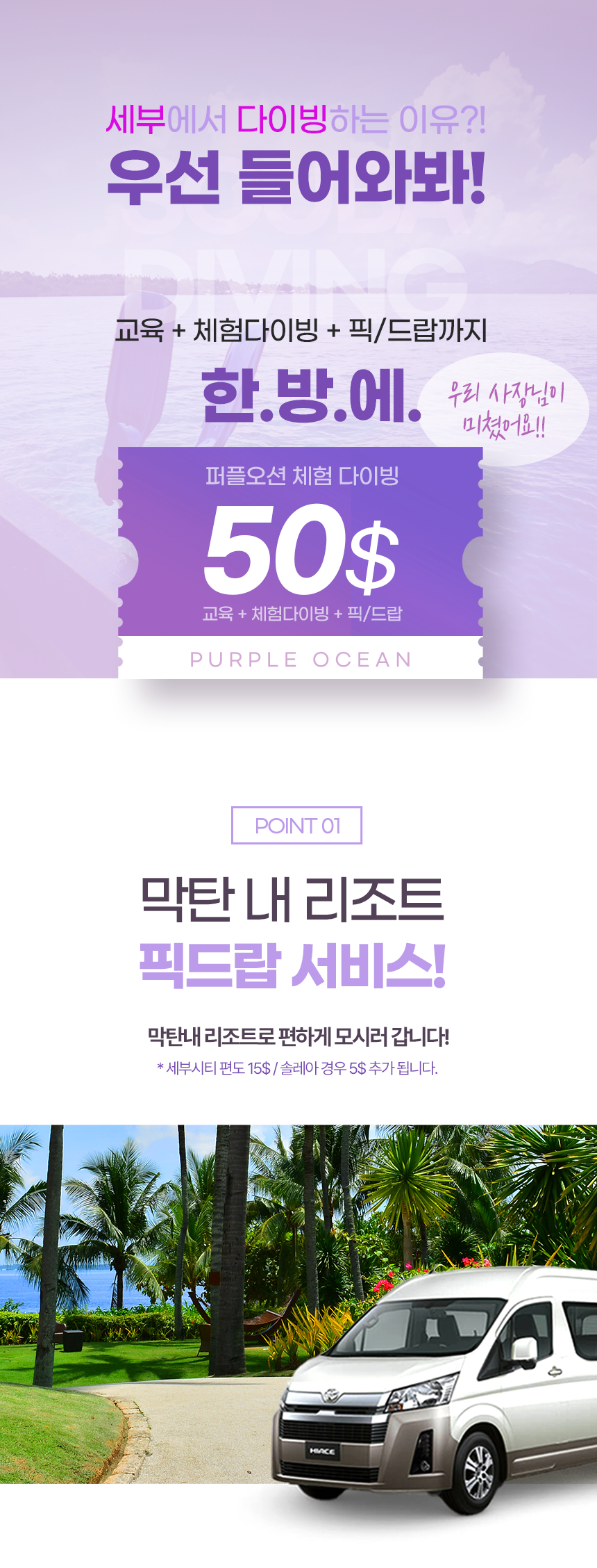 세부 퍼플오션 체험다이빙 + 픽드랍 무료