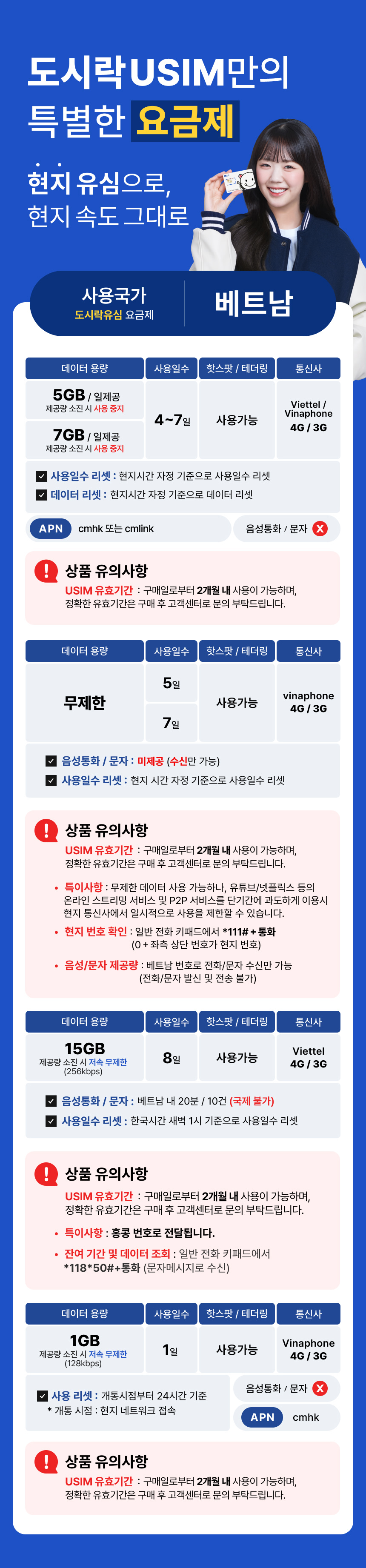 ・① 단말기 컨트리락 미해지, 휴대폰 보호서비스 가입, 데이터로밍 차단 시 해외유심 사용이 어렵습니다.