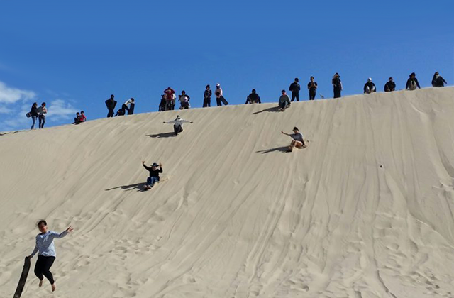 아찔한 높이의 모래 언덕을 사막썰매를 타고 내려오며 짜릿함을 느껴보세요.
