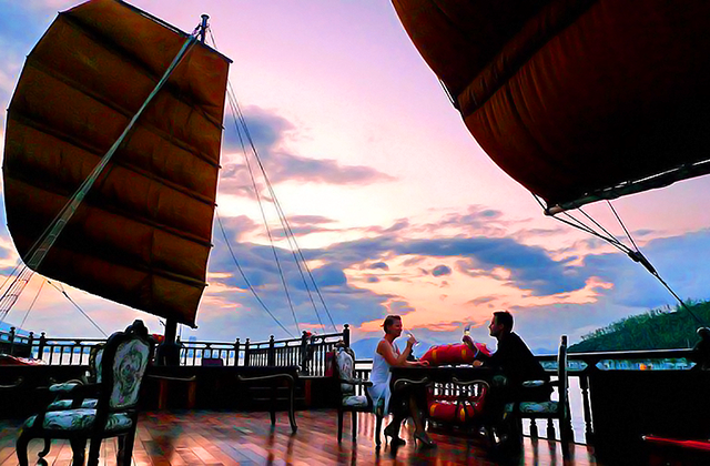 아름다운 나트랑의 바다가 붉게 물들어가는 풍경을 황제 크루즈에서 감상해보세요.