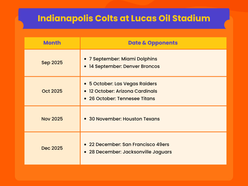 ・ 루카스 오일 스타디움에서 열정적인 팬들과 함께 짜릿한 분위기에 흠뻑 빠져보세요.