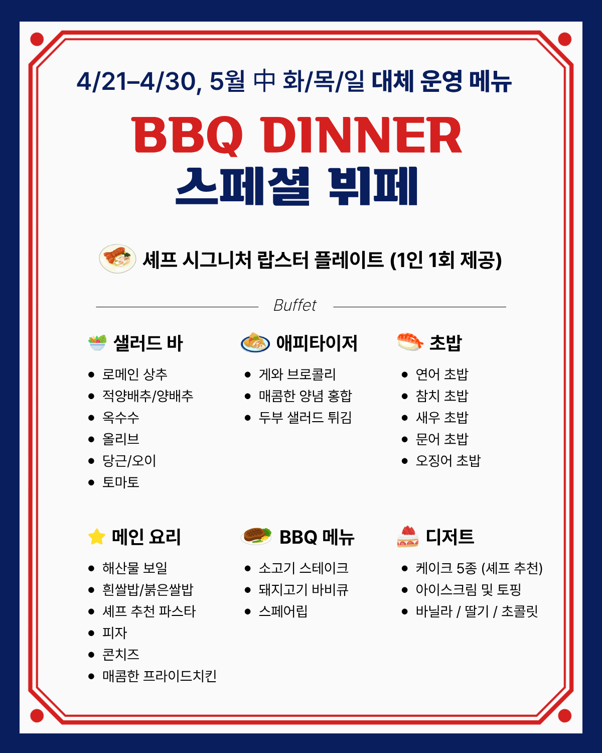 ・✔ BBQ 디너 스페셜 뷔페 (공연 없음)