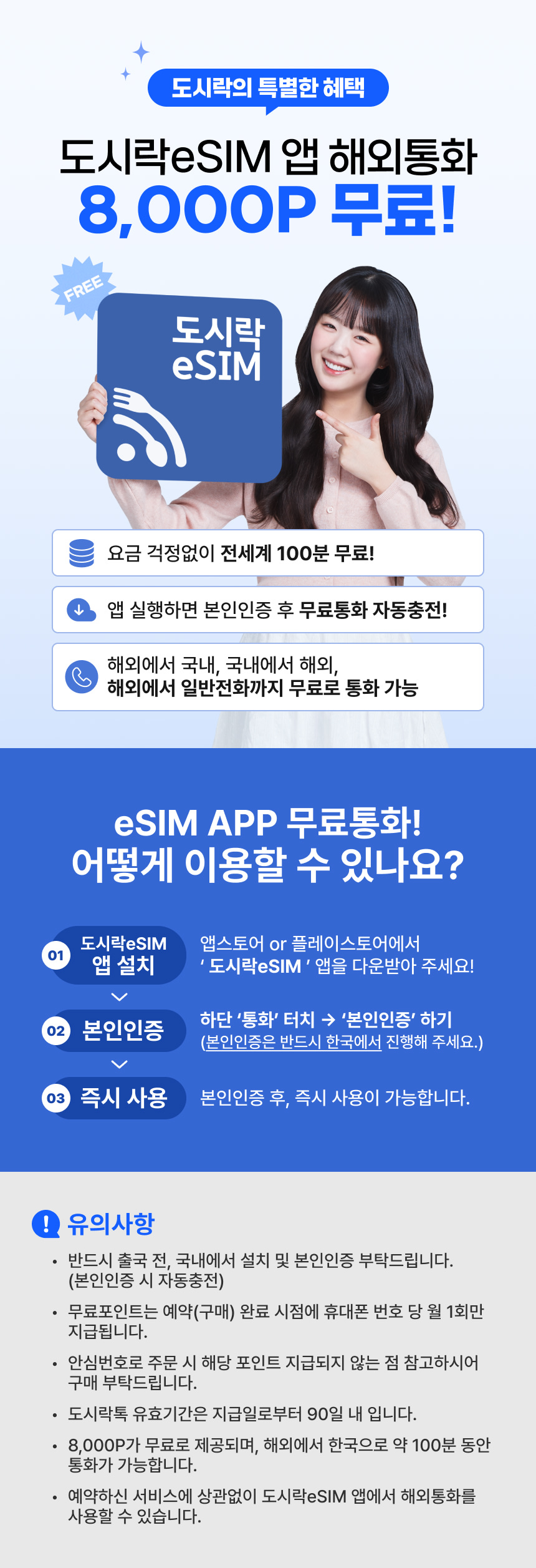・④ 사용기간은 유심카드 활성화 시점부터 시작됩니다. 24시간 기준이 아닌 하루 단위로 계산됩니다. ex) 현지 기준 2020년 2월 2일 13시 개통 시(활성화): 2020년 2월 2일 23:59:59 1일 종료되며 사용 기간 하루 차감