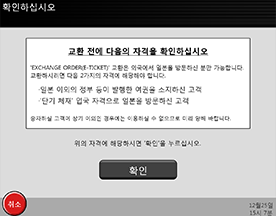 ・ ‘EXCHANGE ORDER (E-TICKET)'를 선택합니다. ※화면은 다를 수 있습니다.