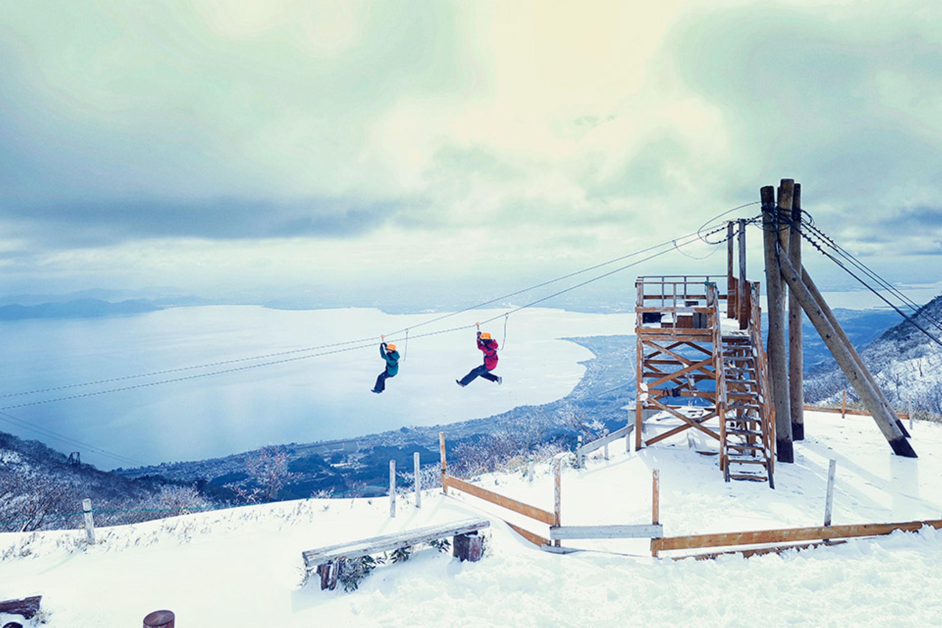 ・ 비와호의 멋진 경치 – 산 정상 슬로프에서 탁 트인 전망을 감상하며 스키와 눈놀이를 즐겨보세요.