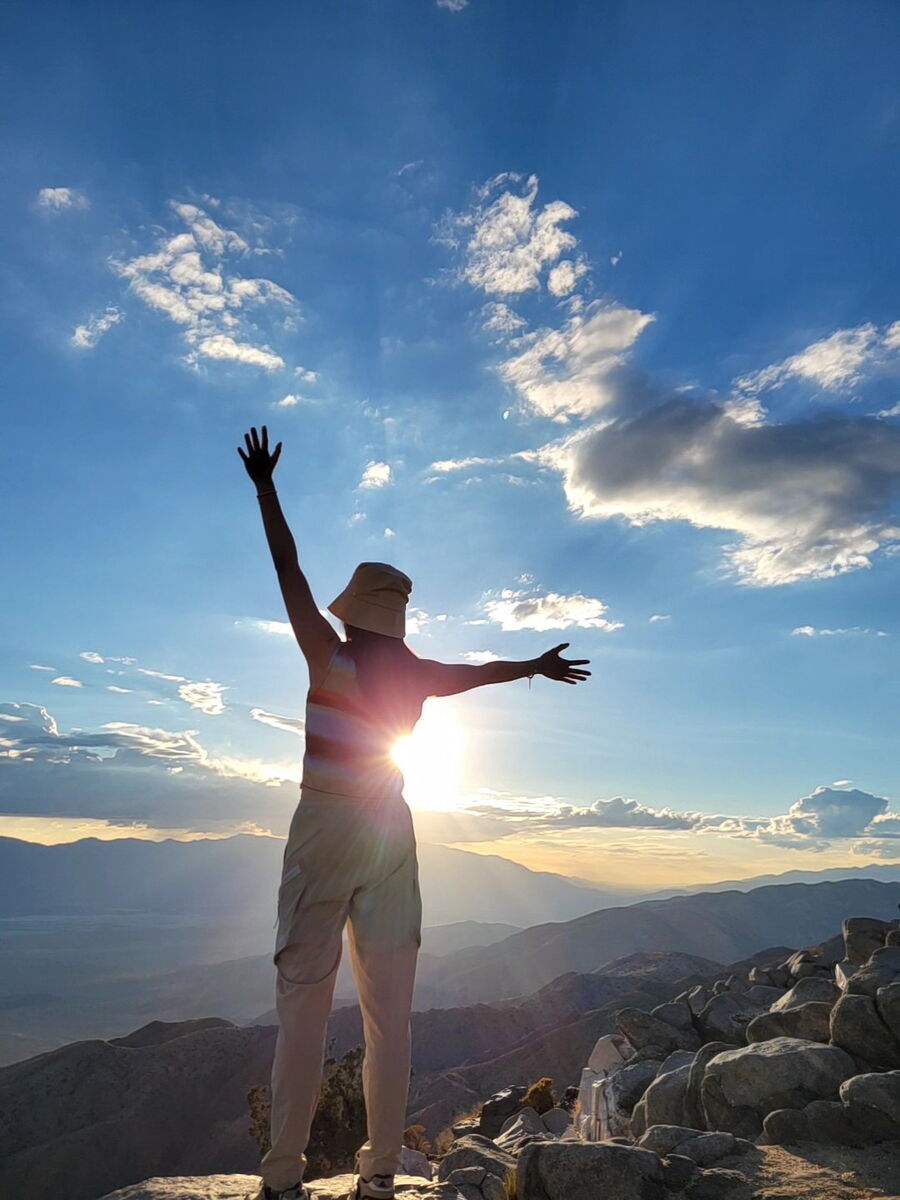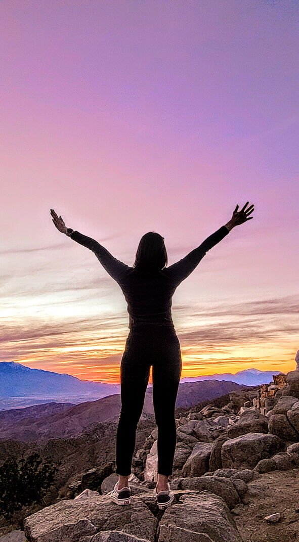 ・ ・ LA 샷 : 바위에 앉아 환상적인 석양을 감상하며 감성적인 LA 샷을 담아보세요.