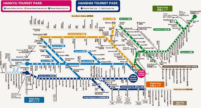 한큐 패스의 노선을 미리 확인한 후 이용하는 것이 좋아요.