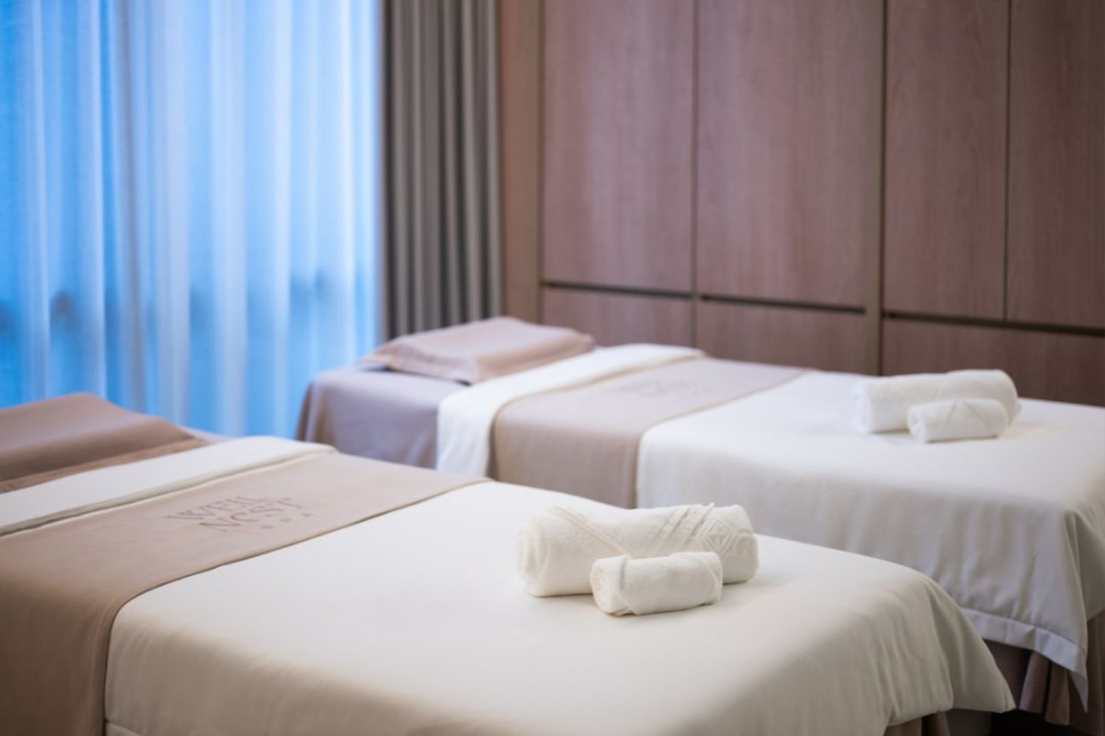 ・ 차분한 분위기와 프리미엄 아로마 웰니스 제품을 갖춘 고요한 스파룸을 경험해보세요.
