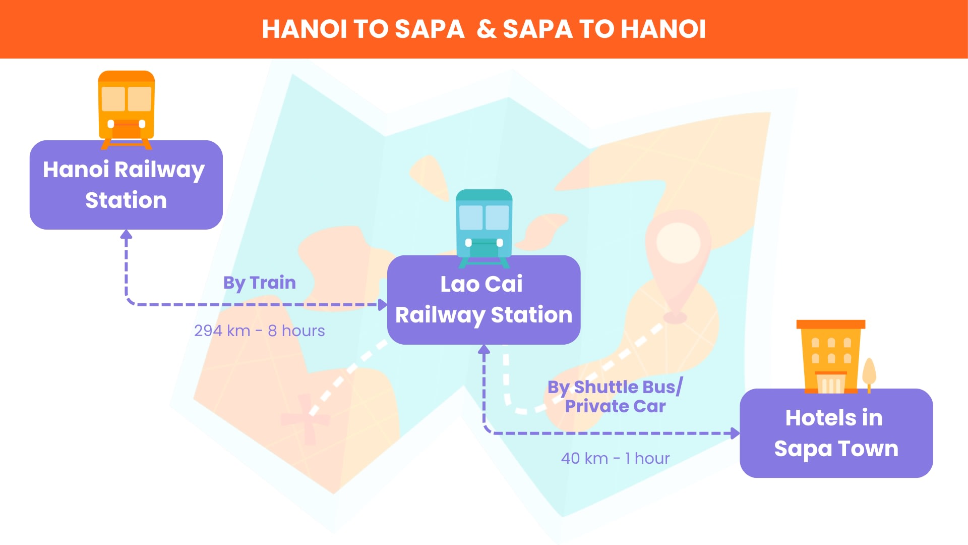 ・ 일정: 하노이 SP3 열차는 22:00에 출발해 06:00에 도착합니다 (빅사파 열차, 차파 익스프레스 열차, 다미트란스 익스프레스) SP7 열차는 22:40에 출발해 06:30에 도착합니다 (차파 익스프레스 열차, 다미트란스 익스프레스, 베트남 철도) 라오까이 (사파) SP8 열차는 12:05에 출발해 19:40에 도착합니다. (다미트란스 익스프레스, 베트남 철도) SP4 열차는 21:30에 출발해 05:35에 도착합니다. (빅사파 열차, 차파 익스프레스 열차, 다미트란스 익스프레스)